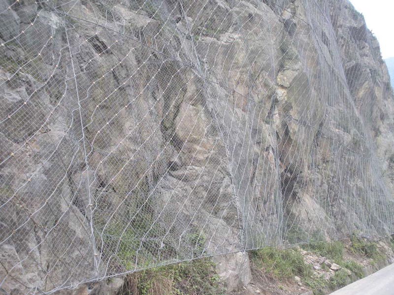 GPS1主動防護網的網型為DO/08/300,支撐繩采用直徑為16mm的鋼絲繩,上下兩根支撐繩。鋼絲繩網與支撐繩通過縫合繩縫合,縫合繩選用8mm的鋼絲繩。每片鋼絲繩網交叉的鋼絲繩采用不銹鋼卡扣、合金卡扣等材質固定。
