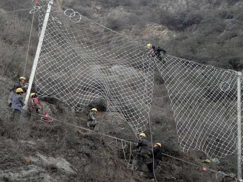 RX-025型被動防護(hù)網(wǎng)是一種由鋼絲繩網(wǎng)組成的柔性攔石網(wǎng),主要用于攔截斜坡面的滾落石,以避免其破壞保護(hù)的對象,如鐵路、公路、建筑物等。該防護(hù)網(wǎng)采用高強(qiáng)度熱鍍鋅鋼絲繩組成網(wǎng)型DO/08/025,具有易于安裝、輕量化和高強(qiáng)度等特點(diǎn)。其設(shè)計考慮了惡劣地形條件下的安裝,可以通過最少量的錨固和開挖實(shí)現(xiàn)快速簡便的施工安裝。